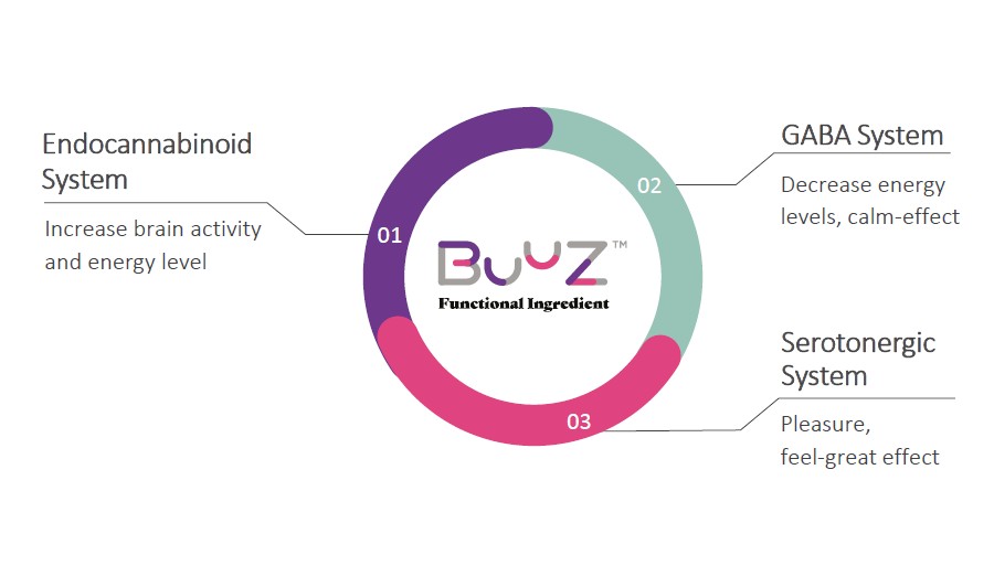 BUUZ™ conține un amestec precis de 37 de terpene funcționale, provenite exclusiv din plante precum lemongrass și cuisoare. Utilizând doar ingrediente "ultrapure" de cel mai înalt nivel de puritate, a fost dezvoltată această formulă naturală, garantând o calitate excepțională și o eficiența validată. Ingredientele BUUZ™ respectă toate reglementarile FEMA (Asociația Producătorilor de Arome și Extracte) și EFSA (Autoritatea Europeana pentru Siguranta Alimentelor) pentru băuturi.